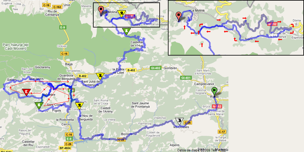 Alternativa desde Campdevanol, con Merolla, Creueta y Molina por Masella. La distancia total sería de 155 km