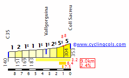 - Coll de Camporiol, np (km 104,5): 506 m – 5 km – 4,3 %