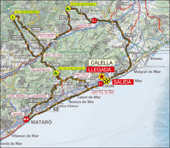 1ª ETAPA (Lunes 24): CALELLA – CALELLA (169,7 km). Mapa y perfil interactivo / rutómetro
