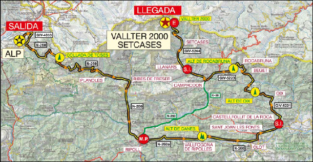 4ª ETAPA (Jueves 27): ALP – VALLTER 2000 (SETCASES) (166,4 km). Mapa y perfil interactivo / rutómetro