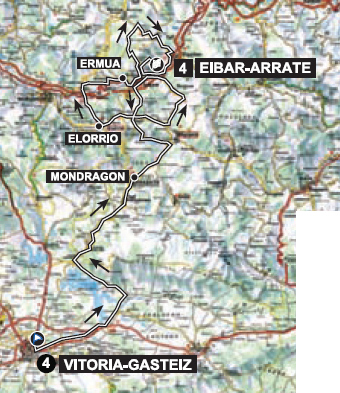 4ª ETAPA (Jueves 10 Abril):  VITORIA-GASTEIZ – EIBAR (ARRATE)  (151,2 km).  Rutómetro y mapa interactivo