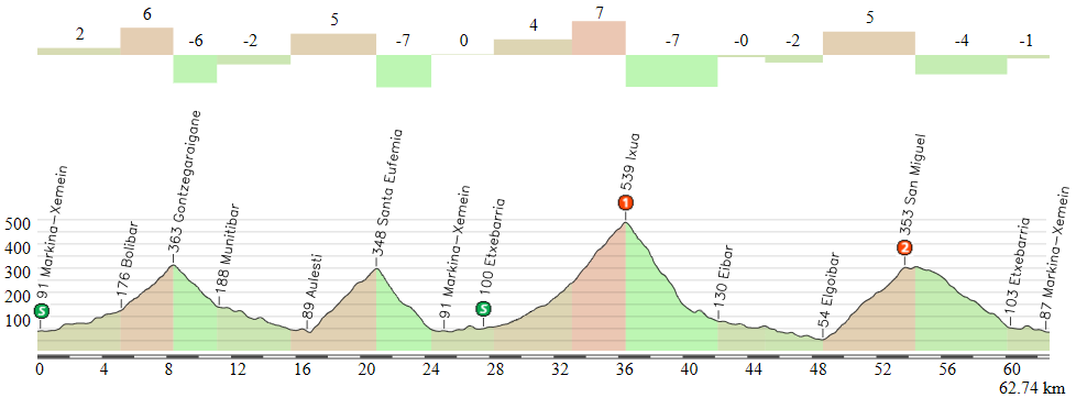 La parte final, con un doble circuito en torno a Markina-Xemein, incluyendo Ixua + San Miguel en el último bucle