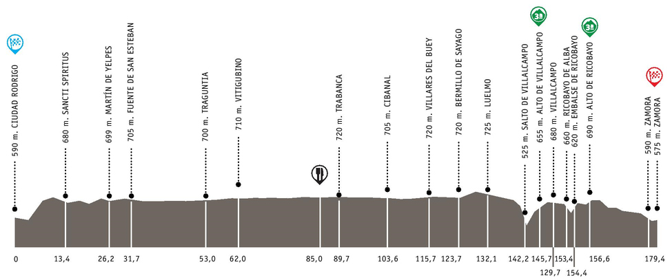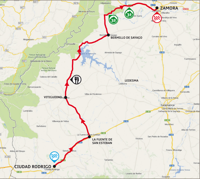1ª ETAPA (Viernes 16 Mayo):  CIUDAD RODRIGO – ZAMORA (179,4 km).  Rutómetro / Mapa llegada