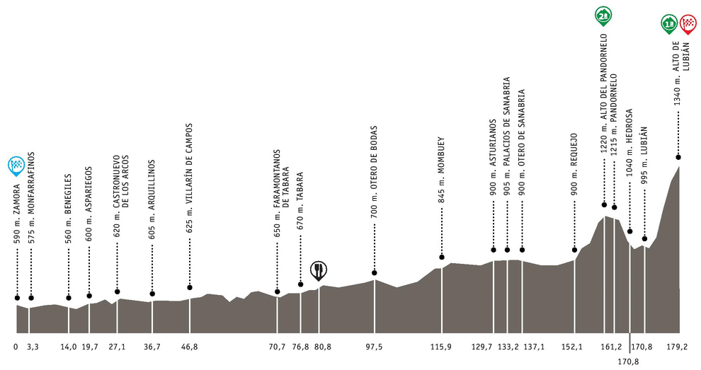 2ª ETAPA (Sábado 17 Mayo):  ZAMORA – ALTO DE LUBIAN  (179,2 km).  Rutómetro / Mapa llegada
