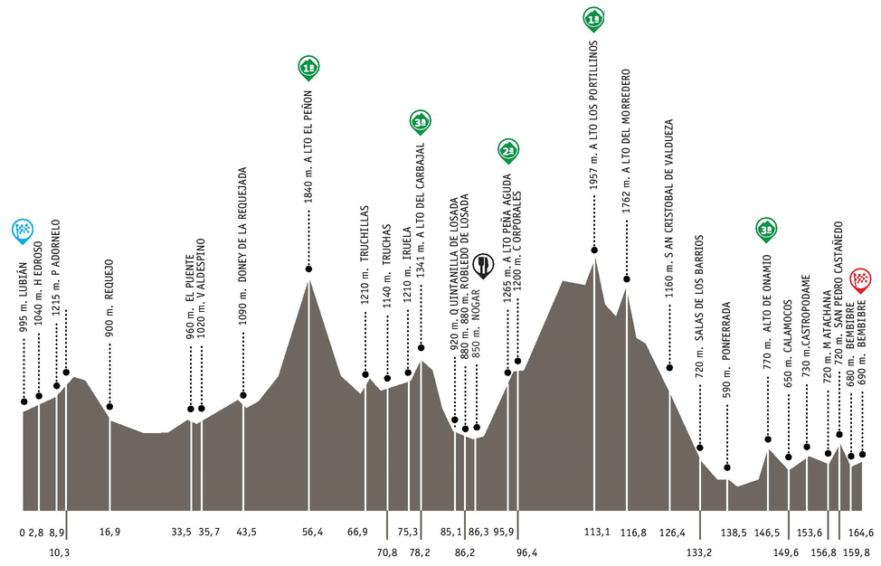 Y es que en esta edición hay programadas tres grandes subidas inéditas en profesionales: el Alto de Moruxal/Lubián, la vertiente sur del Peñón (utilizada como descenso en 2009 y 2011) y el Llano de las Ovejas/Portillinos, uno de los Especiales de paso de la península y que pese a haberse estrenado en la Vuelta a León nunca se había incluído entero en profesionales, llegando como máximo hasta el Morredero (por la vertiente norte). Y ya no sólo los puertos, sino que como decíamos anteriormente el propio diseño de la etapa es muy novedoso.