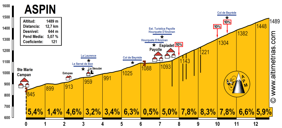 - Côte de Ste. Marie de Campan, 3ª (km 165,3) *sigue subiendo hasta meta