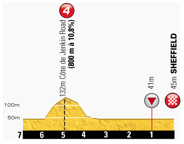 El segundo día de carrera llega una etapa estilo clásica, similar en su perfil a la Lieja-Bastoña-Lieja (salvo por su menor kilometraje) al incluir multitud de cotas, destacando la presencia de un puerto ya de entidad como Holme Moss, con 4,7 km al 7% al media, y el “serrucho” de los últimos 35 km, con 6 ascensiones (aunque sólo 4 puntuables), llamando la atención por sus rampas Oughtibridge, también conocida como Jaw Bone y que cuenta con 1,5 km al 9,1% (oficialmente, de acuerdo a otras fuentes es algo más duro), y Jenkin Road, con 800 m al 11% y puntas del 20%, coronándose a sólo 5 km de la llegada en Sheffield.