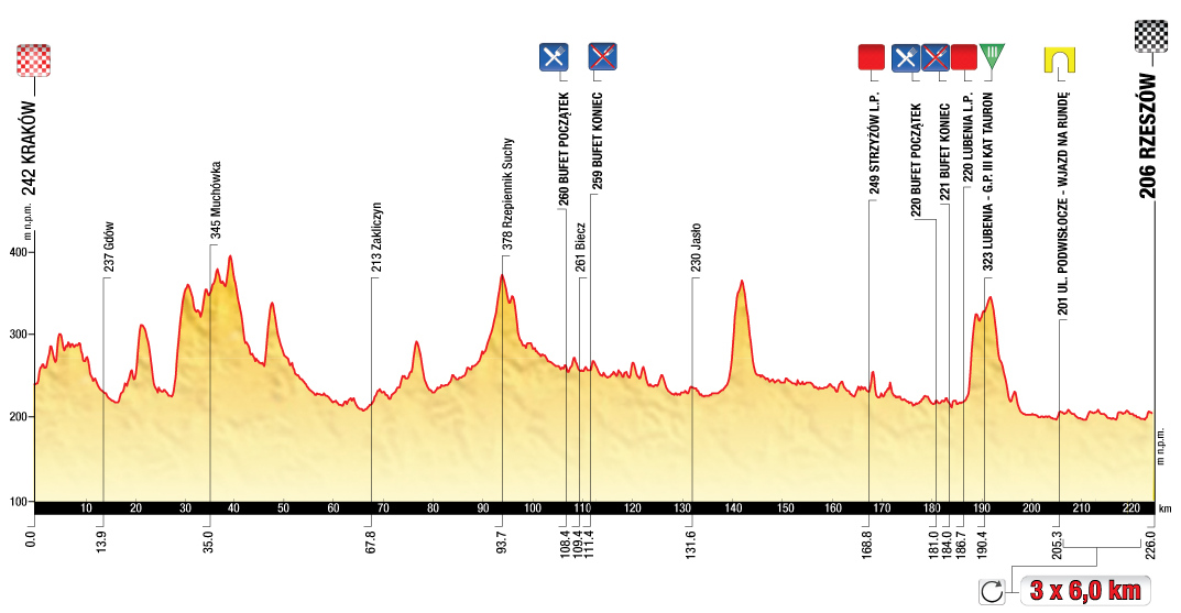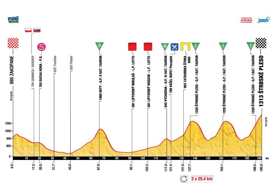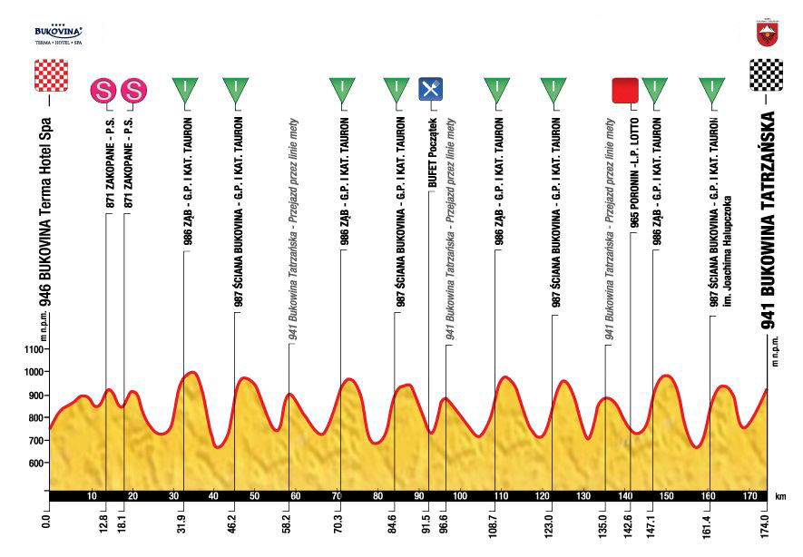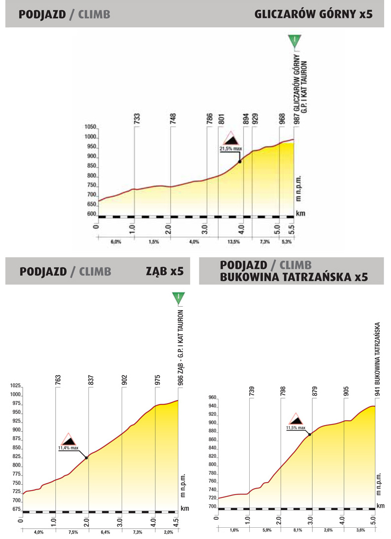 Superada esa jornada llegada un tríptico a priori decisivo, con la mencionada etapa de Eslovaquia, con meta en Strbskie Pleso tras un triple paso por la cota homónima, con 8 km en torno al 4,5% de media, si bien en la última subida se añade un repecho final con puntas del 16%; el clásico «serrucho» de Bukowina Tatrzańska, donde tras un pequeño bucle inicial se darán 4 vueltas a un circuito de 38 km con 3 cotas encadenadas, todas ellas con rampas por encima del 10%, e incluso del 20% en el caso del muro de Bukovina; y como cierre de la prueba una contrarreloj de 25 km con salida y llegada en Cracovia, la 2ª ciudad más importante del país y cuyo casco viejo está declarado Patrimonio de la Humanidad.