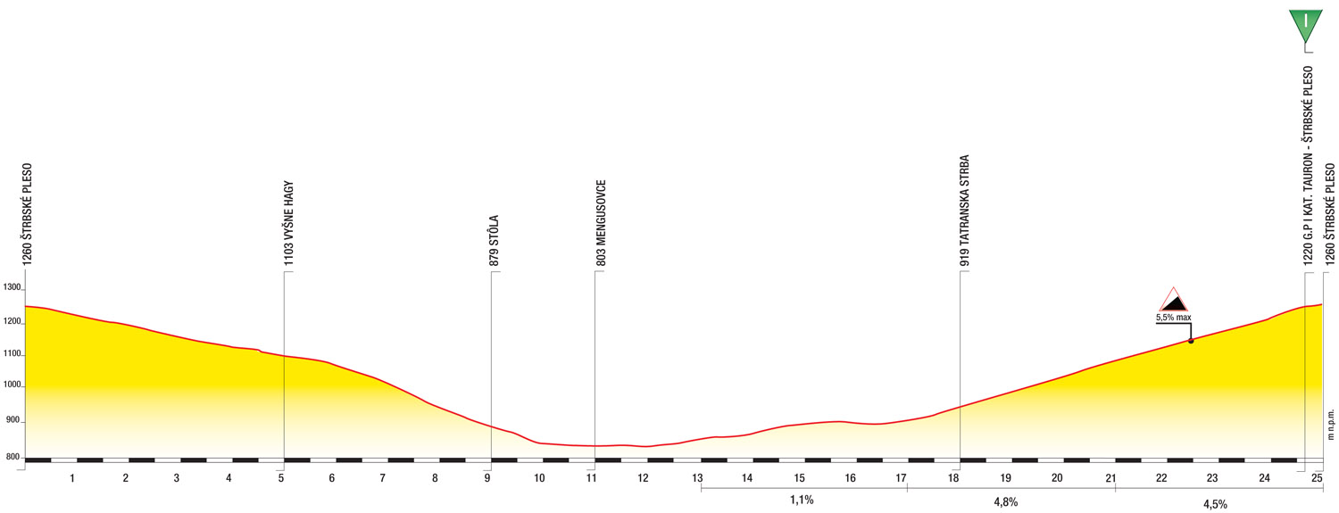- Strbske Pleso -triple paso-, 1ª (km 137,7 / 163,1 / 188,5): 1.220 m *en el último paso la subida continúa 1,5 km