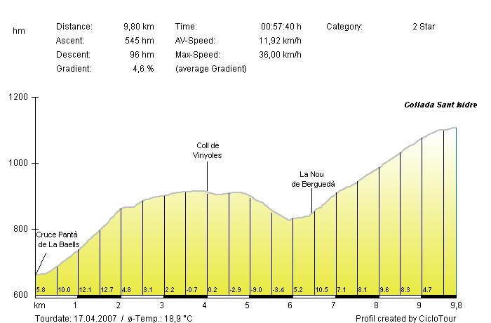 Después de estos 100 primeros kilómetros de desgaste y desnivel, tras pasar Berga aparecen las grandes rampas que deben romper la carrera. Como aperitivo, la Collada de Sant Isidre por el Coll de Vinyoles, una subida doble con un inicio terrible (1,5 km al 11,6%) que da paso a un cresteo más suave antes de que las rampas vuelvan al 9% en el tramo final. Si a esta dureza unimos una carretera revirada, secundaria, estrecha, todos los corredores deberán ir muy atentos para evitar contratiempos.