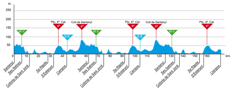 Trofeo Santanyi – Ses Salines – Campos, 175,5 km  (Jueves 29 de enero).  Rutómetro / Mapa interactivo
