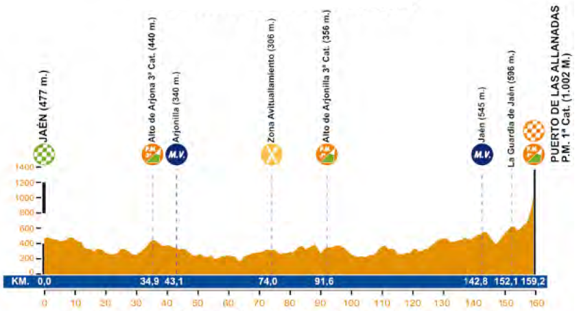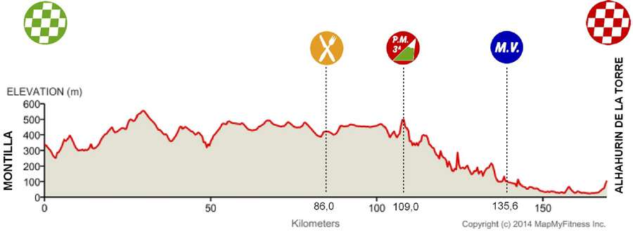 Para cerrar la prueba, una última etapa con salida en Montilla, en la provincia de Córdoba, y final en Alhaurín de la Torre, ya en Málaga. Aunque toca la zona ondulada y bellísima del Desfiladero de los Gaitanes, salvando varios repechos, la jornada parece condenada al arreón final de los hombres rápidos … aunque eso sí, ojo al repecho del último km, que con 800 m al 6-7% antes del giro final, a sólo 200 m de meta, puede hacer daño a los más despistados, siendo una llegada favorable para los velocistas completos y «up-hill finishers». De todos modos, es muy poco probable que haya cambios en la clasificación general.