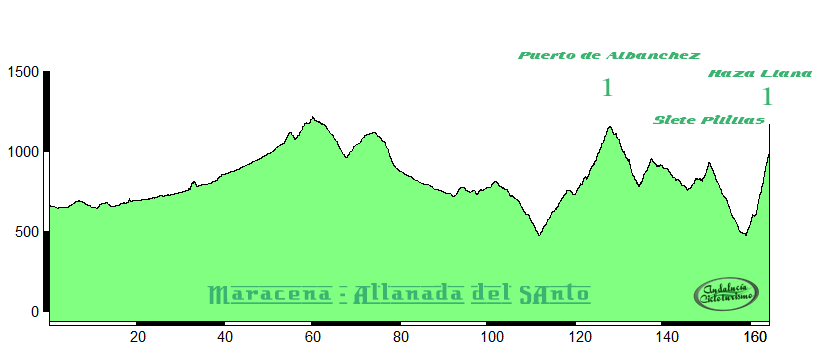 • Puerto de Haza Llanas, 1ª (Meta):  1.689 m – 16,7 km – 5,4 %
