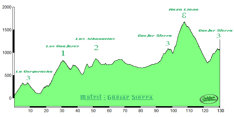 Alternativa Motril – Güejar Sierra, con Gorgoracha, Guajares, Albuñuelas, Güejar Sierra (2) y Haza Llana. *Para que el kilometraje no fuera tan corto bastaría con añadir un rodeo inicial