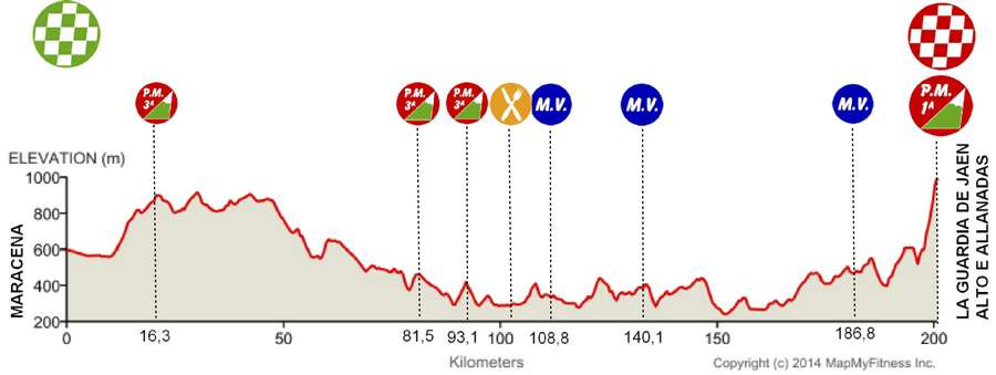4ª ETAPA (Sábado 21):  MARACENA – ALTO DE LAS ALLANADAS / LA GUARDIA DE JAÉN  (199,8 km). Rutómetro / Mapa interactivo / Plano salidallegada / Últimos 3 km