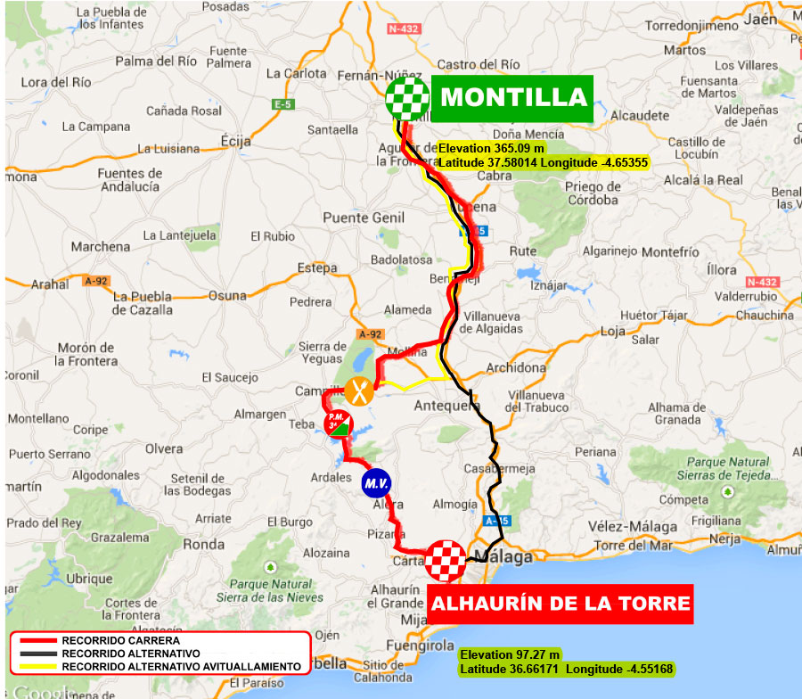 5ª ETAPA (Domingo 22):  MONTILLA – ALHAURÍN DE LA TORRE  (169,8 km).  Rutómetro / Mapa interactivo / Plano salidallegada / Últimos 3 km