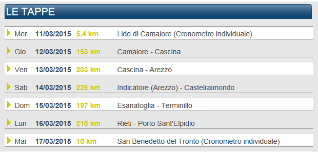 Recorrido Tirreno Adriático 2015