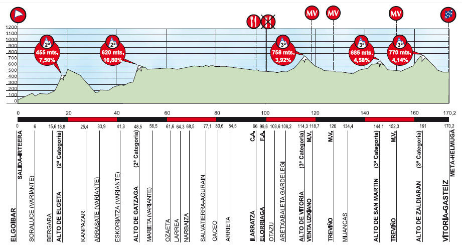 3ª ETAPA (Miércoles 8 Abril): VITORIA-GASTEIZ – ZUMARRAGA (170,7 km). Rutómetro y mapa interactivo / Archivo en PDF