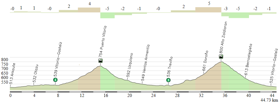 Orduña, el puerto más duro de la etapa aunque a más de 100 km de meta. Perfil de APM, click para ver descripción