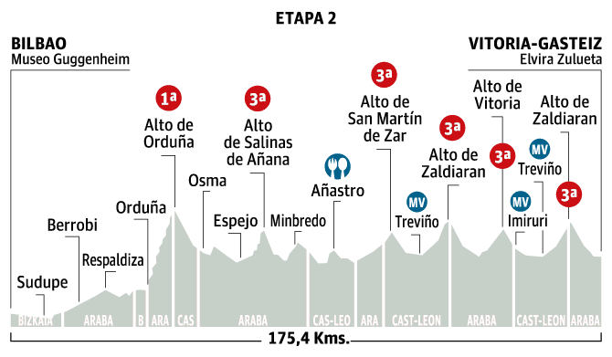 2ª ETAPA (Martes 7 Abril): BILBAO – VITORIA-GASTEIZ (175,4 km). Rutómetro y mapa interactivo / Archivo PDF