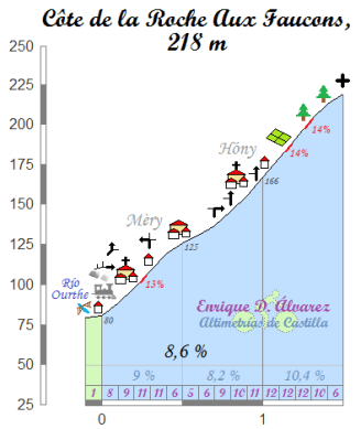 - Côte de Roche-aux-Faucons (km 234): 225 m – 1,5 km – 9,4 %