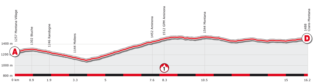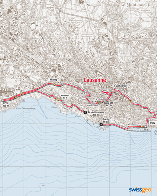 - Mont Pélerin, np (km 83,1): 836 m – 2,4 km – 5 %