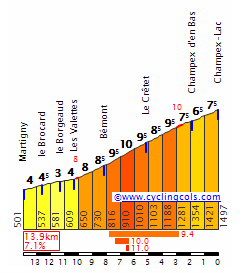 - Bouloz, np (km 120,1): 867 m – 3,3 km – 3,8 %