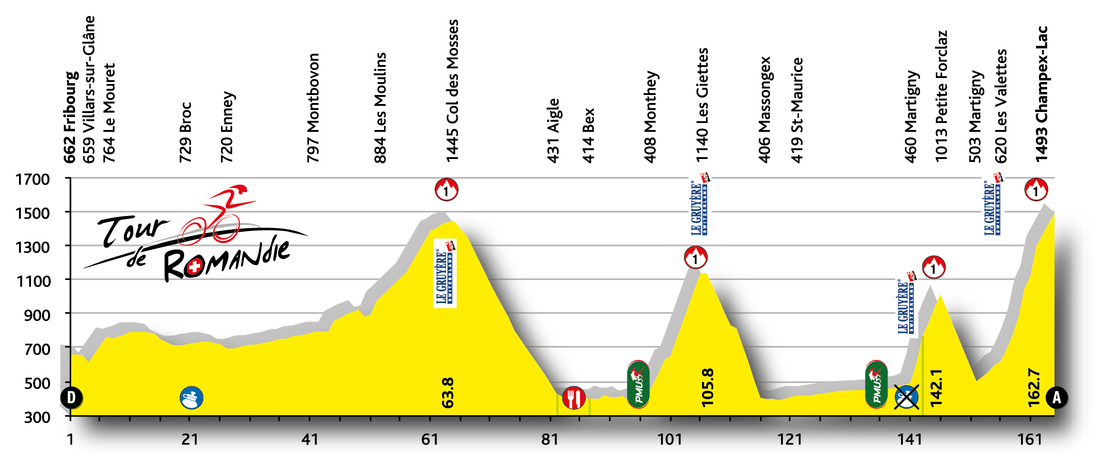 5ª ETAPA (Sábado 2 Abril): FRIBOURG – CHAMPEX LAC (162,7 km). Rutómetro / Vídeo 3D