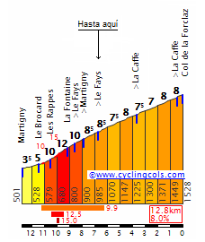 - Col de la Croix, 2ª (km 115): 789 m – 4,8 km – 6,3 %