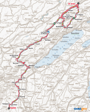 2ª ETAPA (Miércoles 29 Abril): APPLES – SAINT IMIER (168 km). Rutómetro / Vídeo 3D