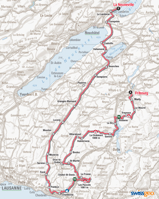 4ª ETAPA (Viernes 1 Mayo): LA NEUVILLE – FRIBOURG (169,8 km). Rutómetro / Vídeo 3D