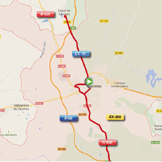 Ya en la periferia de Cáceres se abandonará esta vía, tomando la Ronda Norte (N-521) y posteriormente la Avenida de la Universidad, donde el terreno volverá a picar hacia arriba en busca de la Avenida de las Delicias, donde estará situada la meta tras 600 m finales al 5,5%, aunque eso si, por una carretera muy ancha y en perfectas condiciones, siendo una llegada con opciones tanto para los velocistas completos como para los «up-hill finishers».