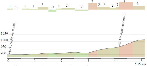 La primera rampa es relativamente dura pero enseguida suaviza convirtiéndose en un falso llano, hasta que al llegar a Peñalba de Castro y volver a girar hacia la izquierda la pendiente aumenta de golpe, con rampas en torno al 10 %, aunque suavizando de nuevo en la parte final, con una recta de meta donde suele pegar viento de cara. En total, 2 km al 5% de media, siendo una llegada favorable para los «up-hill finishers».