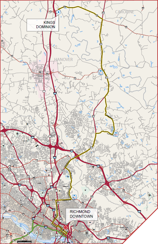 La contrarreloj élite masculina, que se disputará el miércoles 23 de septiembre, tendrá un recorrido distinto al del resto de categorías, superando los 50 km y con la salida situada en el parque de atracciones de «Kings Dominions», a unos 30 km al norte de la ciudad. Esto hace que el perfil sea algo más ondulado … aunque de nuevo menos de lo que aparenta el gráfico oficial, muy engañoso debido a la escala, con los repechos siendo en la realidad demasiado tendidos como para hacer daño, pudiendo subirse «a plato».