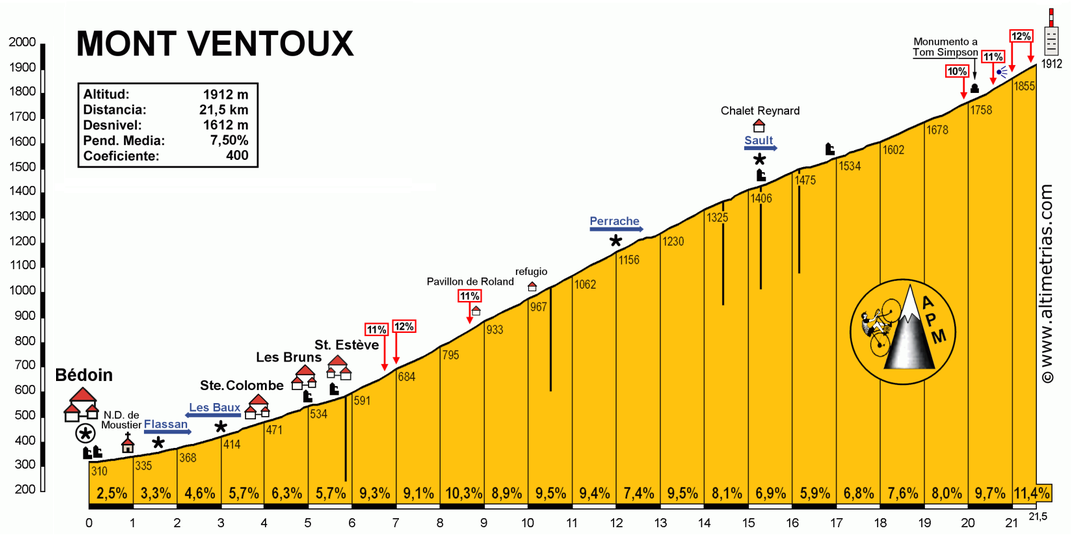 Tras una etapa de transición y la jornada de descanso los ciclistas se enfrentaban al terrible Mont Ventoux, con sus 16 km finales al 8,5%. El puerto hecho por y para los campeones, donde todos y cada uno de los ciclistas sufrían: la trágica muerte de Simpson en el 67, el desfallecimiento de Merckx en el 70 tras cruzar la meta o el mítico triunfo en contrarreloj de Gaul en el 58 eran grandes exponentes de esta mágica cima.