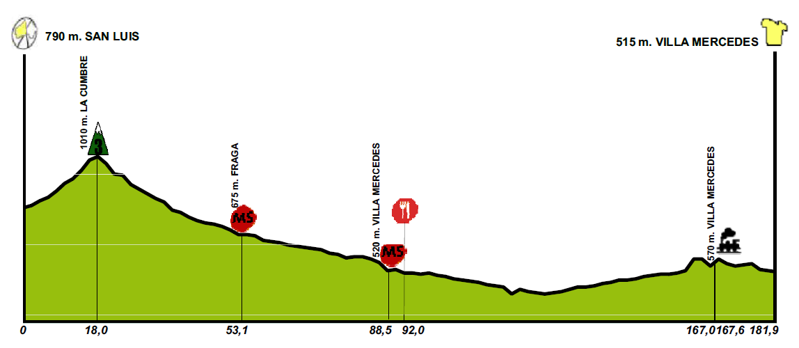 Etapa 2 (Martes 19 enero): San Luis – Villa Mercedes (181,9 km). Rutómetro