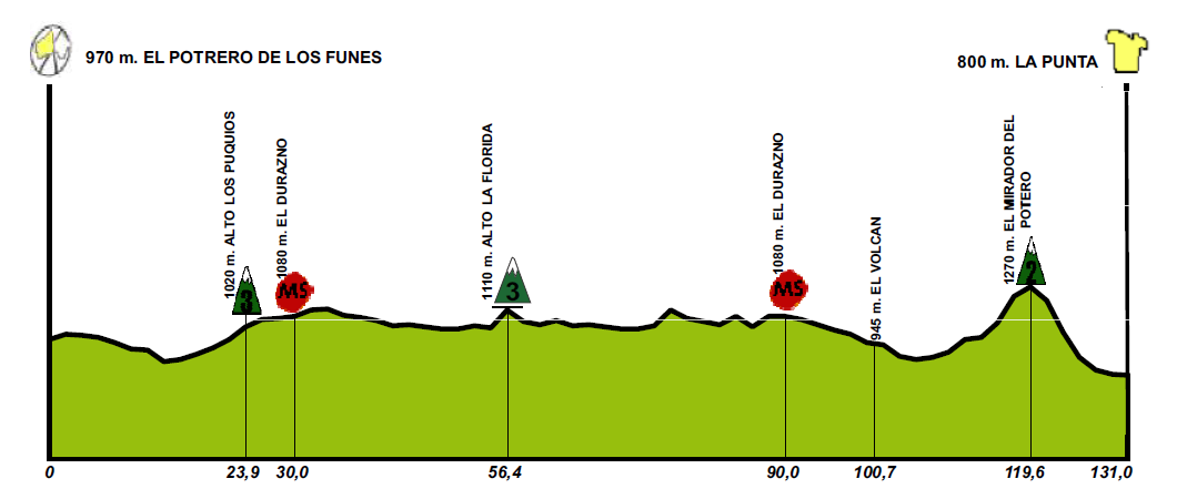 Etapa 3 (Miércoles 20 enero): El Potrero de los Funes – La Punta / El Cabildo (131 km). Rutómetro