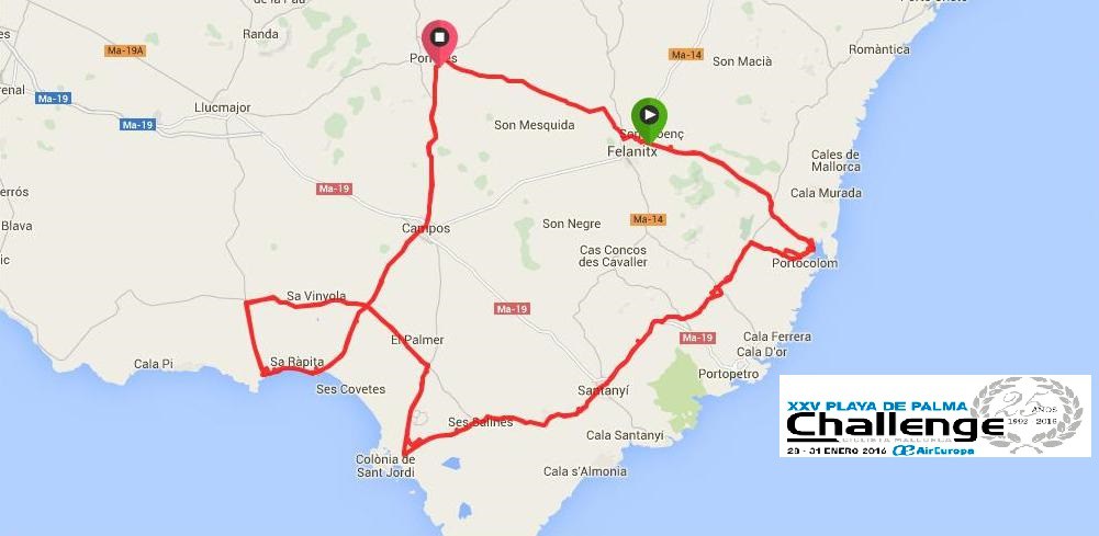 Trofeo Felanitx – Ses Salines – Campos – Porreres, 176,8 km (Jueves 28 de enero). Info oficial / Rutómetro / Mapa interactivo