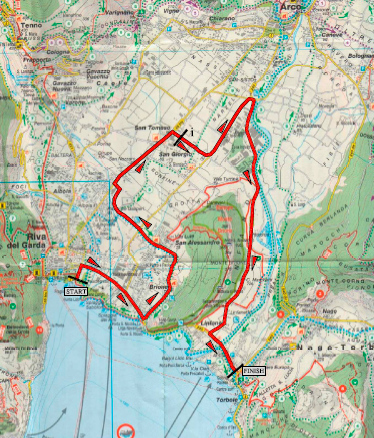 1ª ETAPA (Martes 19 Abril): RIVA DEL GARDA – TORBOLE (CRE) (12,1 km). Info en la web / Rutómetro / Mapa / Salida – llegada / Últimos km