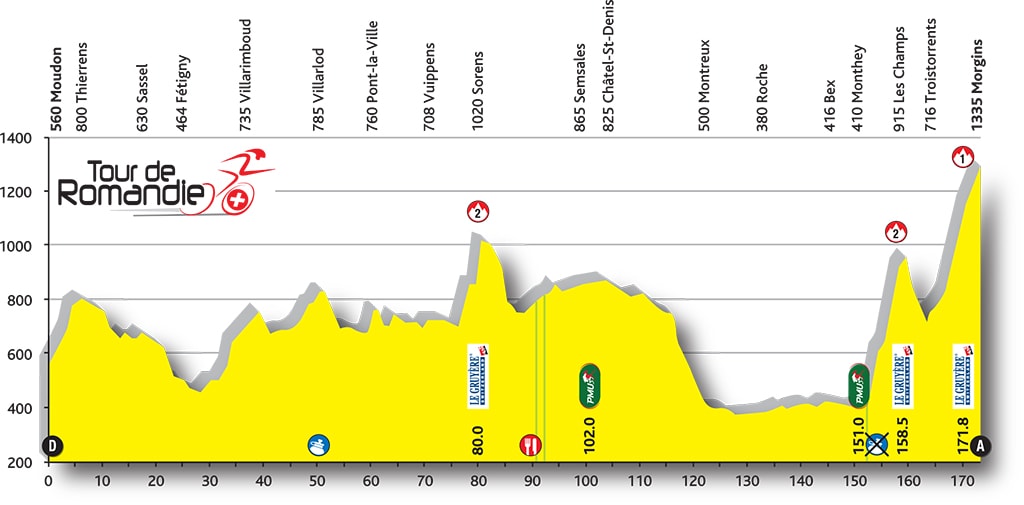 2ª ETAPA (Jueves 28 Abril): MOUDON – MORGINS (173,9 km). Info en la web / Rutómetro / Vídeo 3D