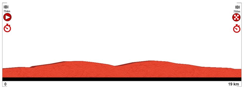 Tanto el recorrido de la prueba contrarreloj femenina como el de la masculina sub-23 tienen salida y llegada en la localidad de Ibi, con un trazado cuya primera mitad sigue direccion este en busca de la suave ascensión al Port d´Ibi (aunque es tan tendida que no pasa de ser un falso llano) y el cruce del Barranco de la Batalla, donde comenzará el regreso hacia Ibi, teniendo que afrontar de nuevo el mismo tramo de falso llano, aunque en sentido contrario, antes de un terreno descendente en busca de la línea de meta, para un total de casi 19 km, siendo un recorrido para ciclistas de fuerza.