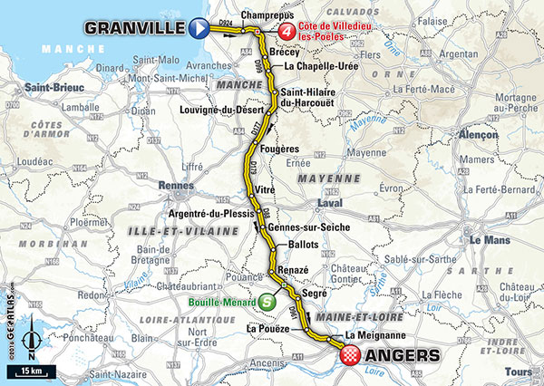 3ª ETAPA (Lunes 4 de Julio): GRANVILLE – ANGERS (155 km). Info oficial