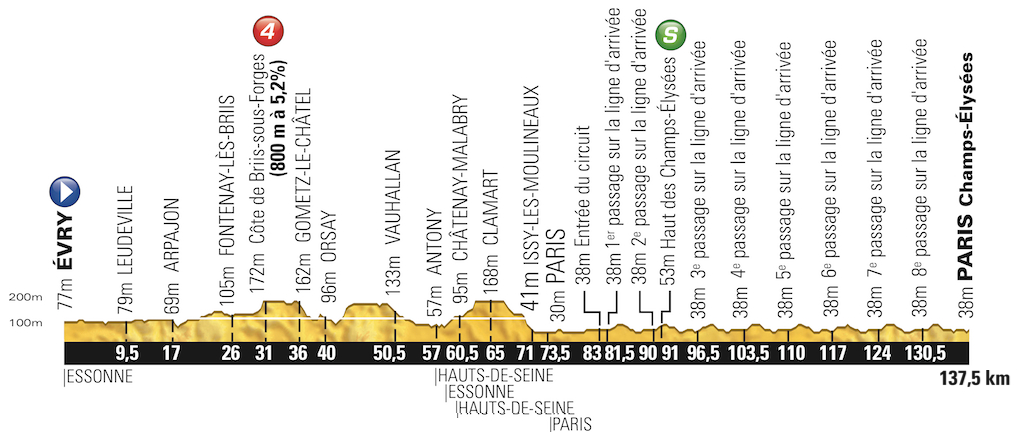 Respecto a los antecedentes, los grandes dominadores de las etapas de París en los últimos años han sido Cavendish, con 4 victorias consecutivas entre 2009 y 2012, y Kittel, con triunfos en 2013 y 2014, si bien el año pasado la victoria fue para Greipel. En esta edición, ¿repetirá victoria alguno de ellos?, ¿se impondrá otro velocista?, ¿o un ataque conseguirá sorprender al pelotón, lo que no ocurre desde 2005 con triunfo de Vinokourov?.