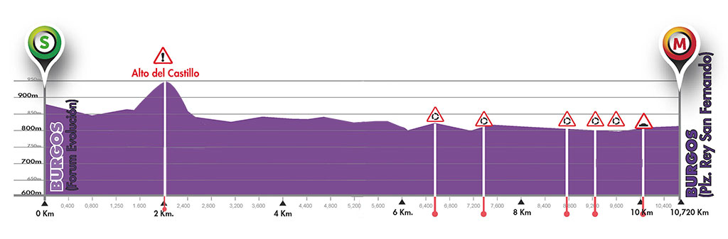 Al igual que en la pasada edición, en la 2ª jornada será el turno para una crono por equipos en la capital, de nuevo con salida desde el Forum Evolución pero con un trazado diferente, dirigiéndose primero hacia el Alto del Castillo, para tras su descenso, con 2 curvas peligrosas, ir hacia el norte, afrontando la zona más favorable de la CRE, con una larga recta de ida y vuelta sólo interrumpida por varias rotondas y el giro de 180º de regreso a la ciudad. Será en los últimos 3 km cuando el trazado vuelva a ser más técnico, con algunas curvas de cierta dificultad antes de la meta en la Plaza del Rey San Fernando, junto a la famosa Catedral de Burgos, para un total de 10,7 km.