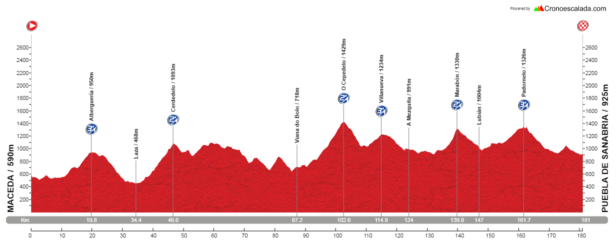 7ª ETAPA (Viernes 26 de agosto):  MACEDA – PUEBLA DE SANABRIA  (158,5 km).  Info oficial / Últimos km