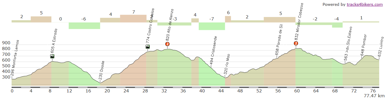 • Alto de Marcelle / A Estrada, np (km 93):  610 m – 7,8 km – 4 %