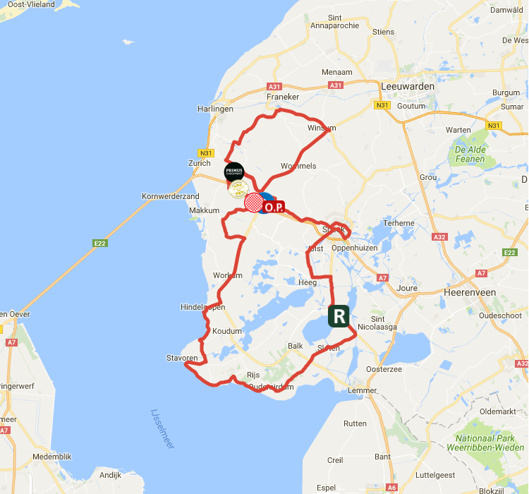 1ª ETAPA (Lunes 19 septiembre): BOLSWARD – BOLSWARD (184,7 km). Mapa interactivo / Rutómetro / Plano salida – llegada