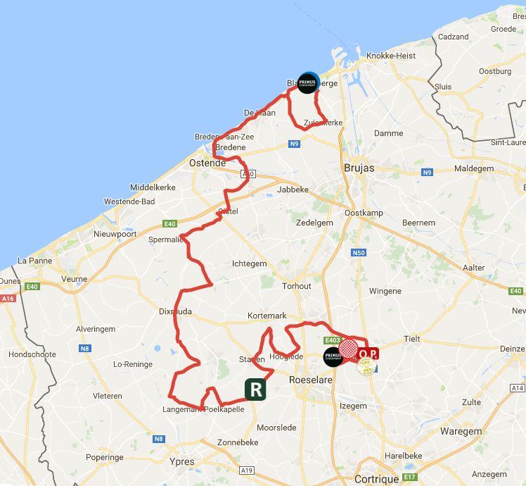 3ª ETAPA (Miércoles 21 septiembre): BLANKENBERGE – ARDOOIE (186 km). Mapa interactivo / Rutómetro / Plano salida – llegada