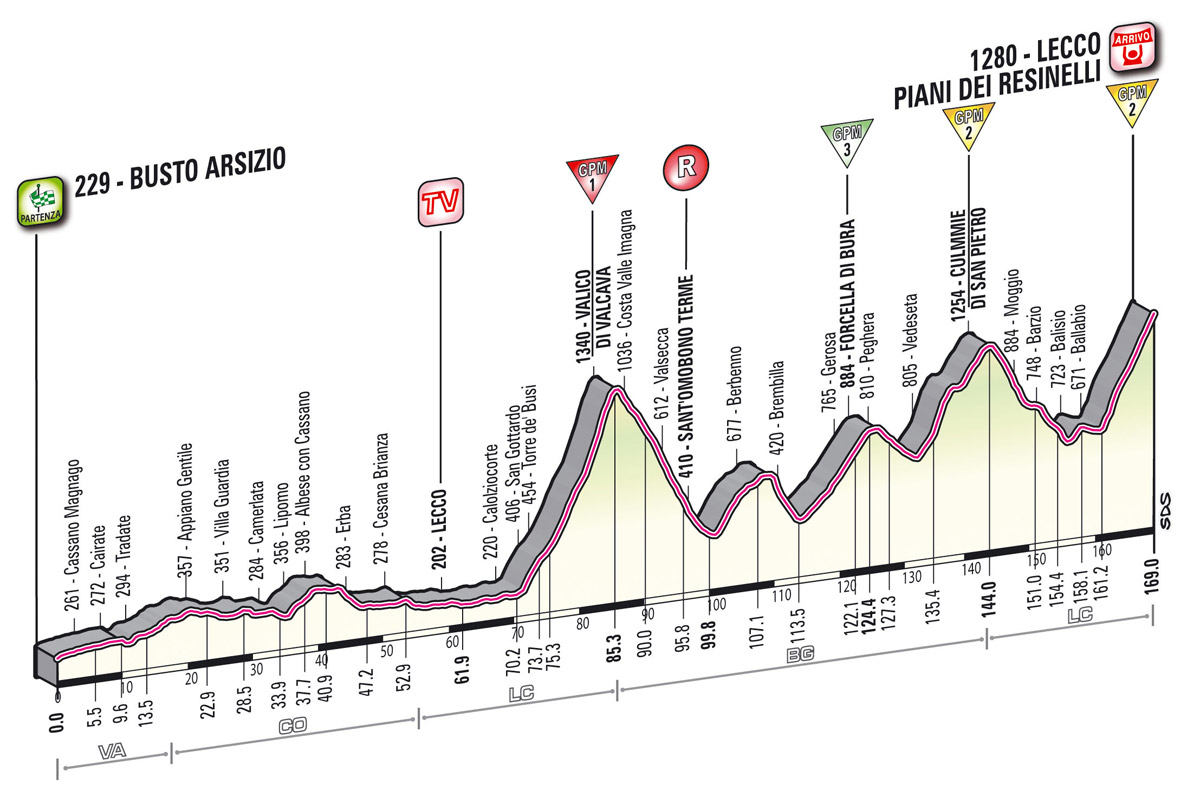 En definitiva, un recorrido durísimo, rondando los 4500 m de desnivel acumulado y con un perfecto encadenado de 5 puertos: Valcava, Berbenno, S.A.Abbandonato, Salvatore y Selvino, estos 3 últimos teniendo una dureza decreciente, lo que puede propiciar que la carrera se rompa desde lejos. Y ojo también a los descensos, varios de ellos muy complicados. Lo único malo, el llano de 12 km entre el final de la bajada de Selvino y el inicio de Bérgamo Alta, que con un trazado rectilíneo y buena carretera favorece el trabajo de grupo frente a corredores en solitario, pudiendo haber favoritos que prefieran esperar al final. En cualquier caso, como siempre la última palabra será de los corredores. Y si se muestran combativos terreno hay para que se vea un gran espectáculo.