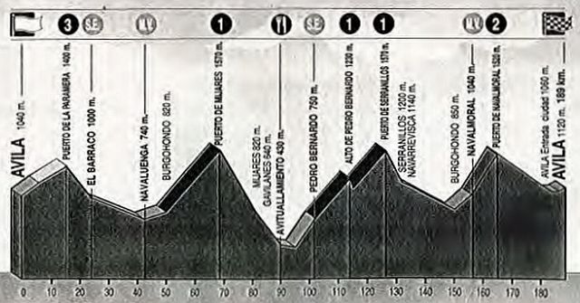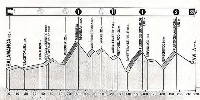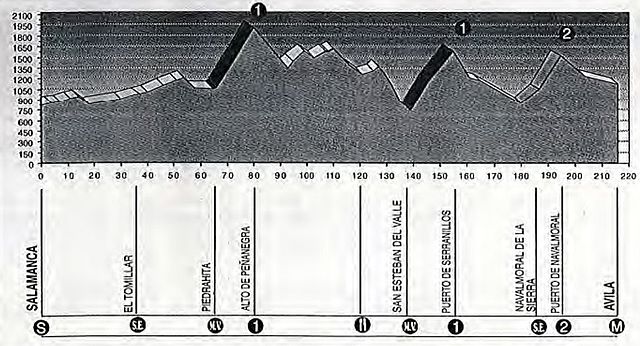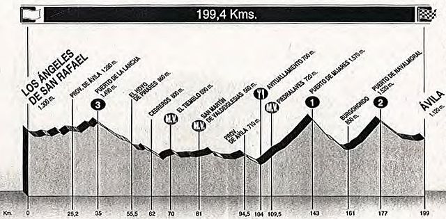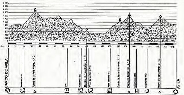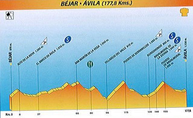Inspirado en vuestra entrada he diseñado una etapa de 205.4km y 4250m de desnivel ( Ya se que el señor Guillen no le van este tipo de trazados ) con La Centenera , Pedro Bernardo , Mijares y San Juan que podrian dar mucho juego despues de un final en La Covatilla-El Travieso